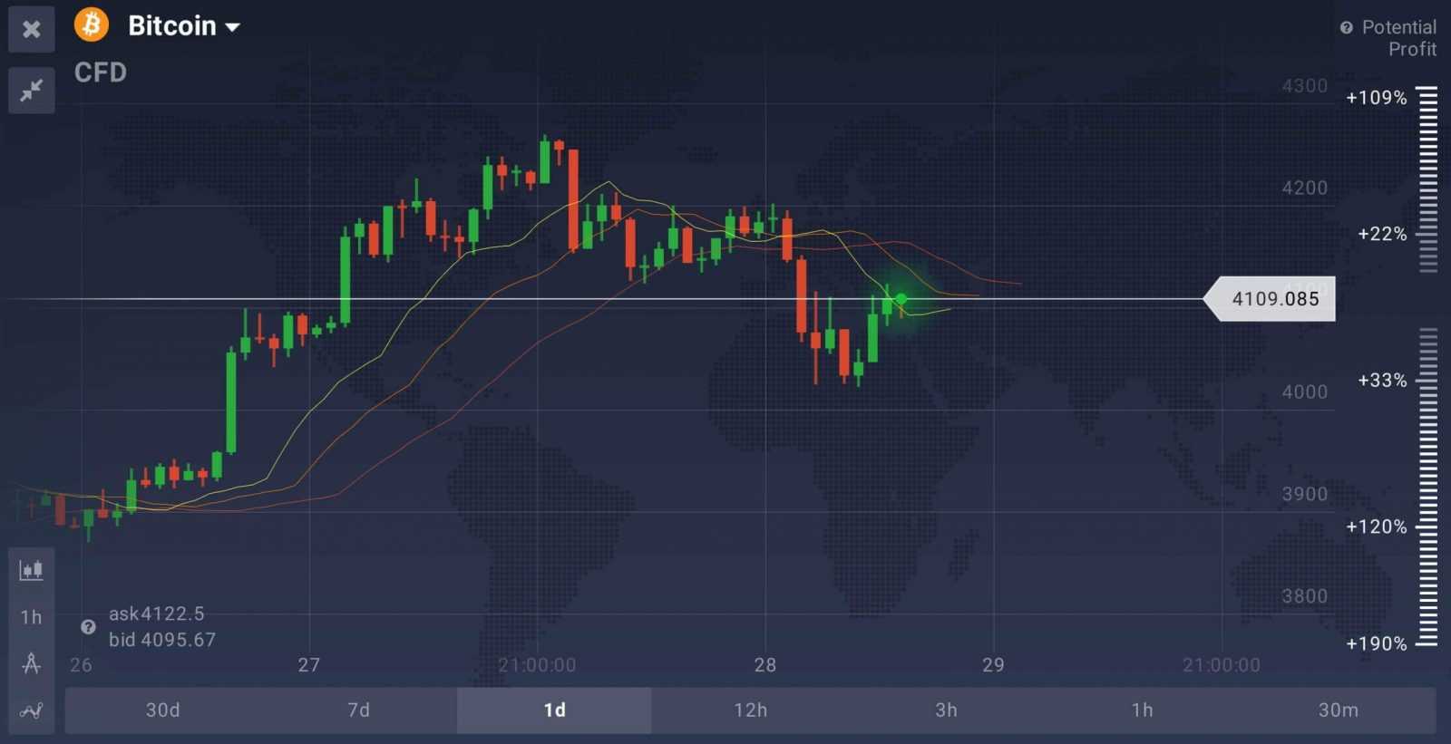Gehandelt bei rund $4200 vor dem Sturz, konnte sich der Bitcoin nur bis zu $4040 und schließlich bis zu $4124 einige Stunden später erholen. Der Sturzflug vom Markt wirkte sich nicht in dem Vertrauen an BTC und an seine Zukunftsaussichten, als der BTC-Handel das grüne Licht von den japanischen und europäischen Behörden erhalten hat. Nach Alligator – einem Tool der technischen Analyse, ist die Zukunft von Bitcoin noch unklar. Der Indikator demonstriert keine besonderen kurzfristigen Trends, sondern gibt Hinweise auf eine Möglichkeit einer Aufwärts- oder Abwärtsbewegung. Die Beurteilung durch die Bollinger-Bänder, ein Indikator, der gut bei der Bestimmung von ruhigen und volatilen Perioden ist, befindet sich der Bitcoin derzeit in der volatilen Phase. Wohin sollte er gehen, ist noch abzuwarten.
