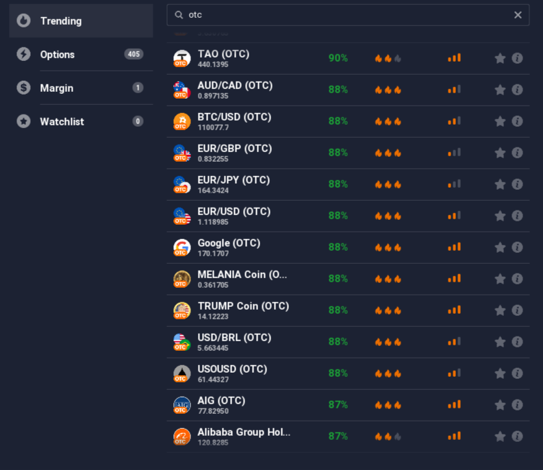 Auf IQ Option beinhaltet der OTC-Markt Vermögenswerte wie: