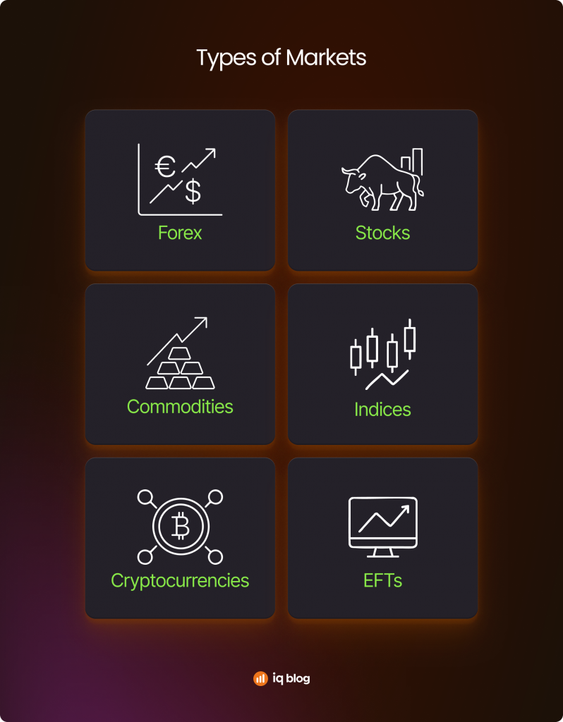 IQ Option offers CFDs on a wide range of assets, including forex pairs, stocks, cryptocurrencies, commodities and indices, all through one platform.