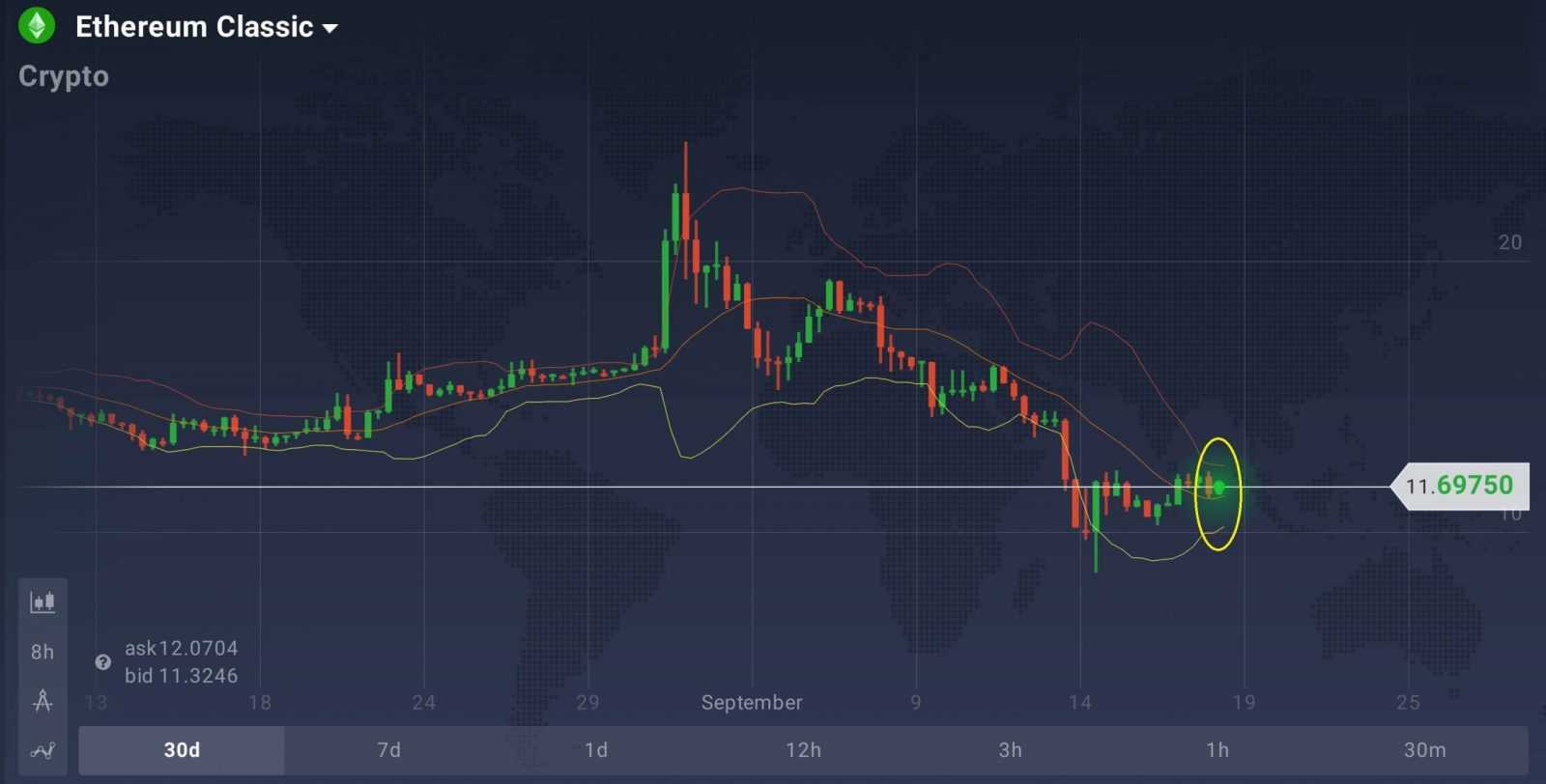 The most recent price swing is not necessarily a sign of an upcoming long-term growth. On the other hand, it can still be the beginning of something bigger than just a brief retraction during the downtrend. As many other cryptocurrencies, Ethereum Classic has reached its all-time high on September 2nd, when a single token was traded at $23.68, two times more than now. It may not sound reassuring but ETC has appreciated 50% since September 15th.