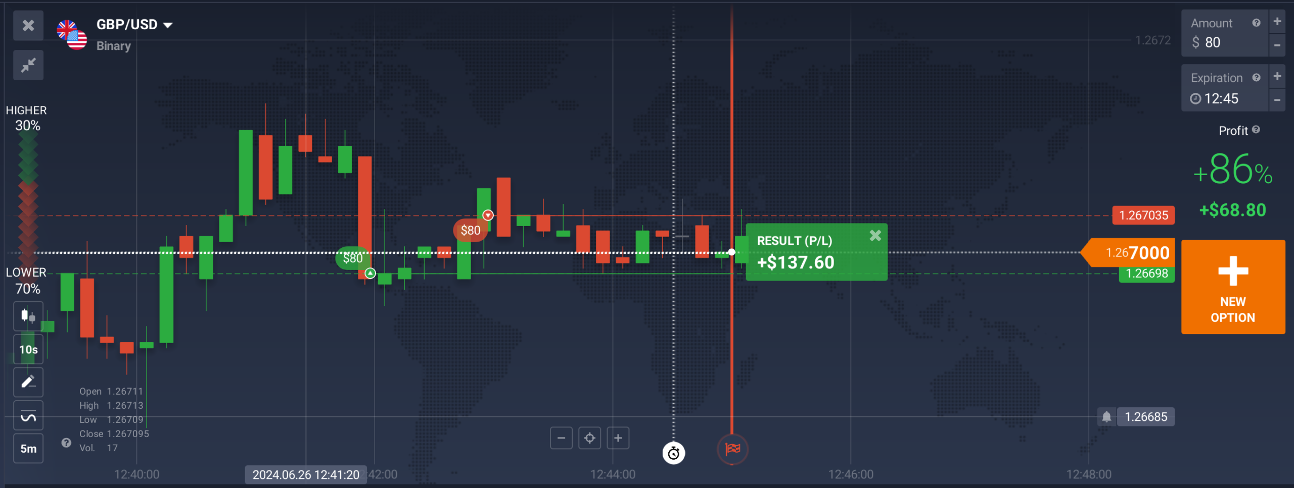 Let’s see an example of the usage of the binary options hedging strategy. For this example, we will be opening two trades on the GBP/USD currency pair.