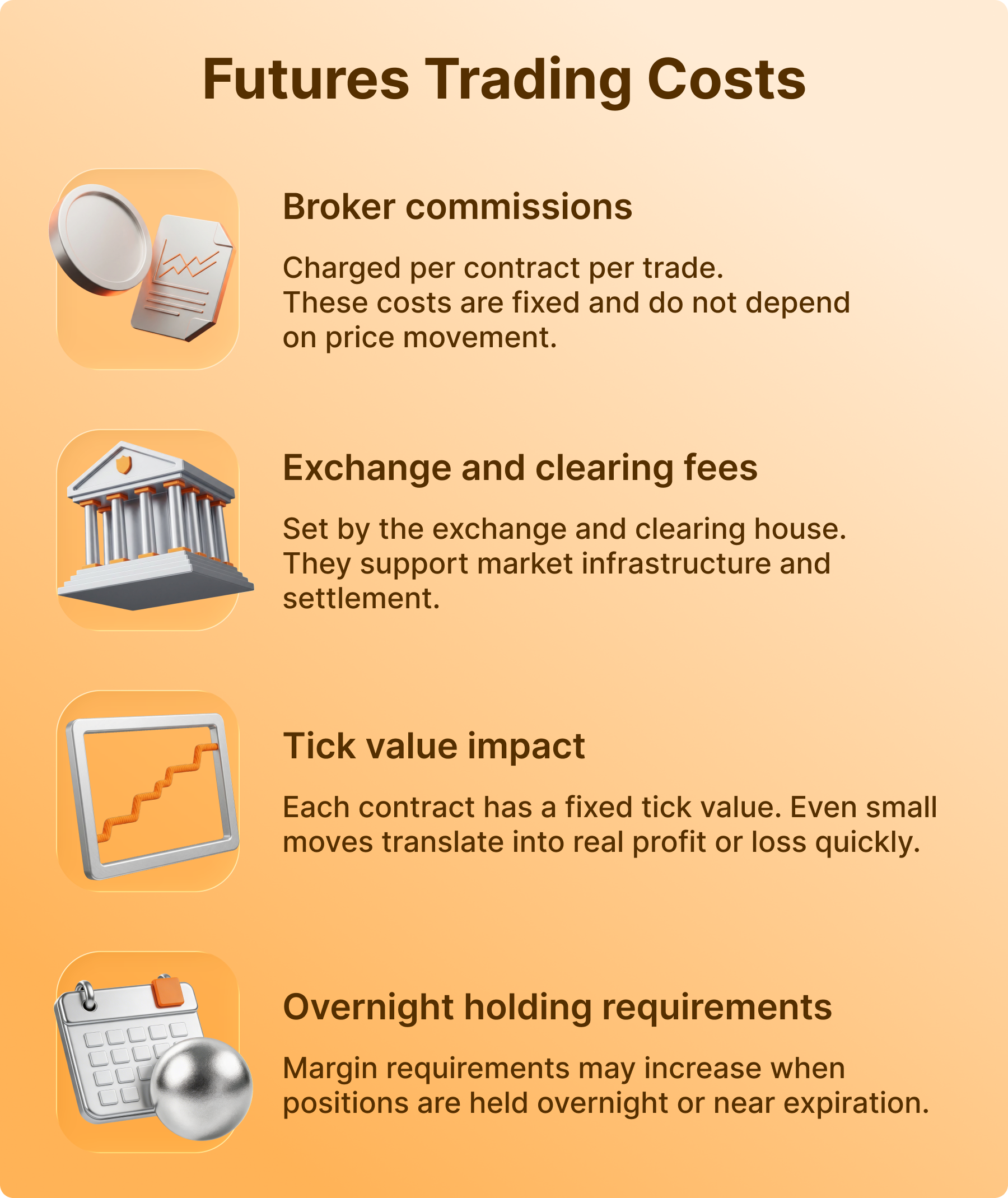 Futures costs are predictable. Risk comes from position size, not hidden fees. Choosing the right contract size keeps costs manageable.