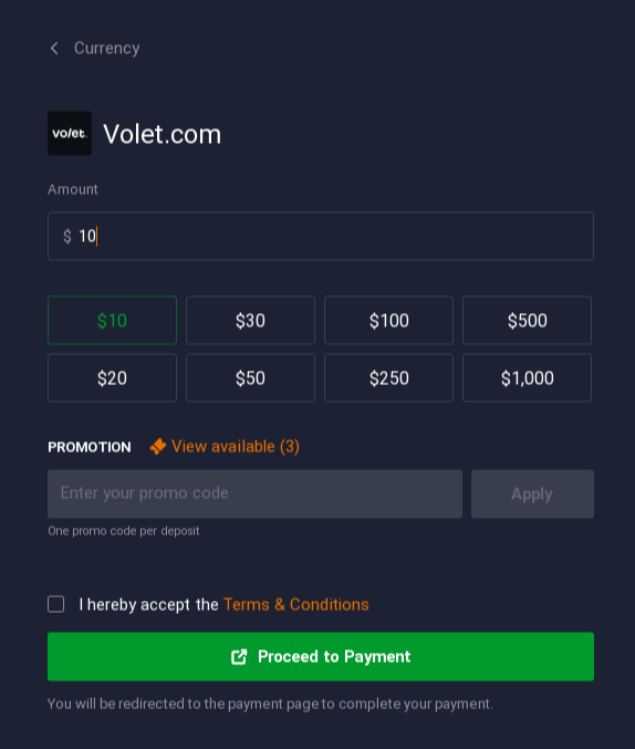 | Deposit declined | Ensure you’re using the correct Volet account linked to your name. Alternatively, visit the Volet support page for assistance. |