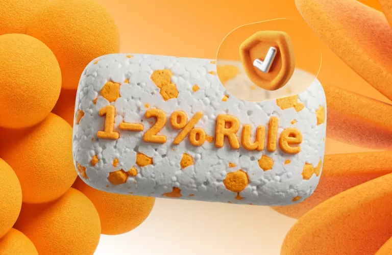 The 1–2% rule means risking no more than 1% or 2% of your total account balance on a single trade.