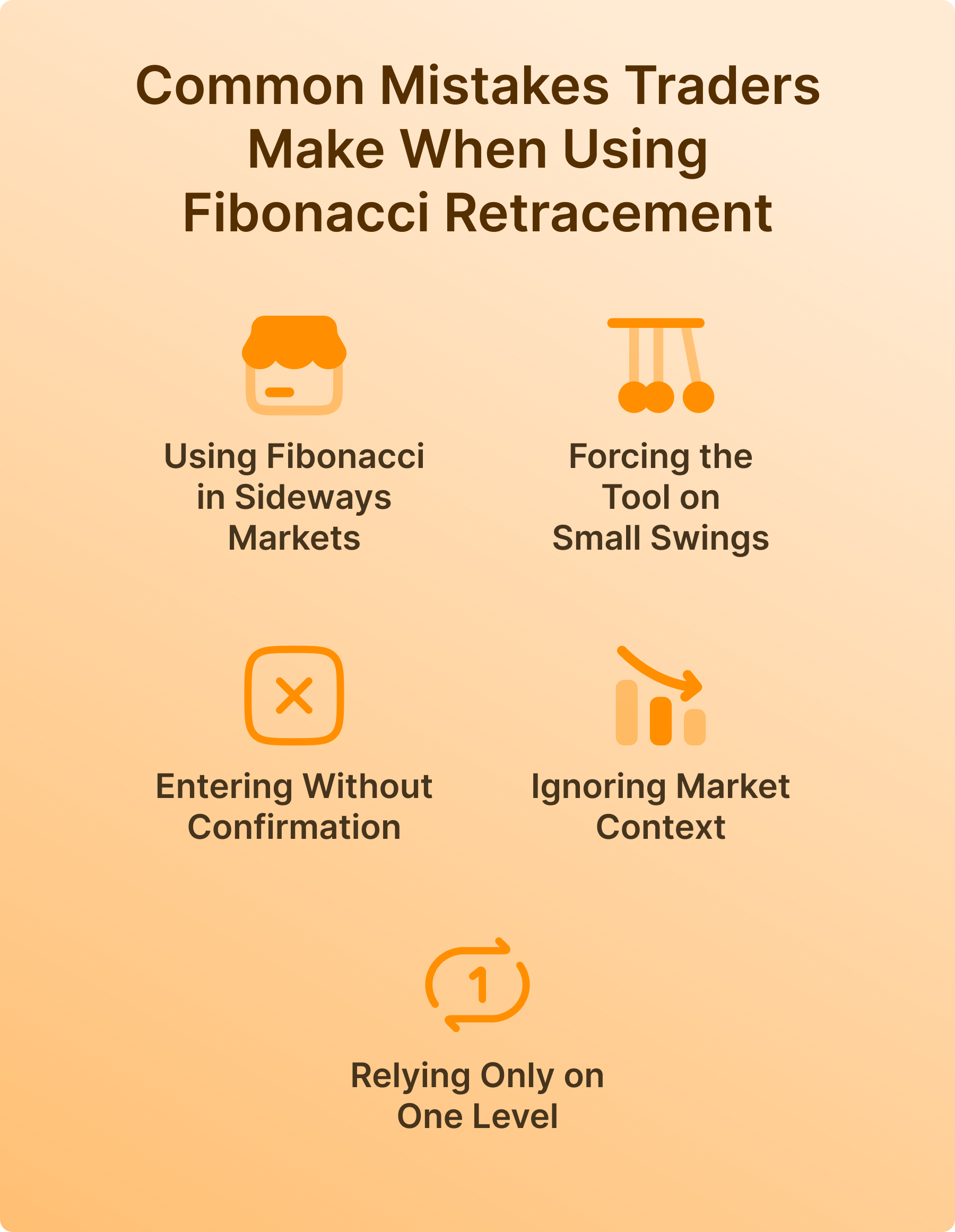 - Ignoring Market Context – Fibonacci retracement should match trend direction, momentum, and structure. If the overall market is weak or unstable, a simple retracement level is not enough. Traders must view the level within the broader chart environment.