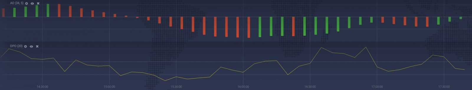 Momentum indicators, as the names implies, track market momentum. In other words, they help estimate the strength of a positive or negative price movement. The faster the change, the stronger the momentum. But why would you want to know it? In trading, the trend strength can be as important as the trend direction. The stronger the trend, the more trading opportunities it can offer. Stop-loss and take-profit levels will also be set differently for a slow-moving market and a highly volatile one. Popular momentum indicators include: Aroon Oscillator, Awesome Oscillator, Balance of Power, Detrended Price Oscillator, and Stochastic Oscillator.