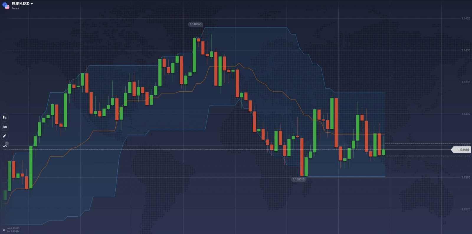 Volatility indicators, as the name implies, measure volatility of a particular asset. It can be said that the higher the volatility, the higher the financial risk associated with the asset, but also the potential payout. Volatility indicators, therefore, help determine periods of rapid and slow price changes. When the market is flat and the price stays the same, volatility is low and trading opportunities are limited. When the price starts to fluctuate, market volatility goes up. Prominent indicators from this category include ATR, Bollinger Bands, and Donchian Channels.