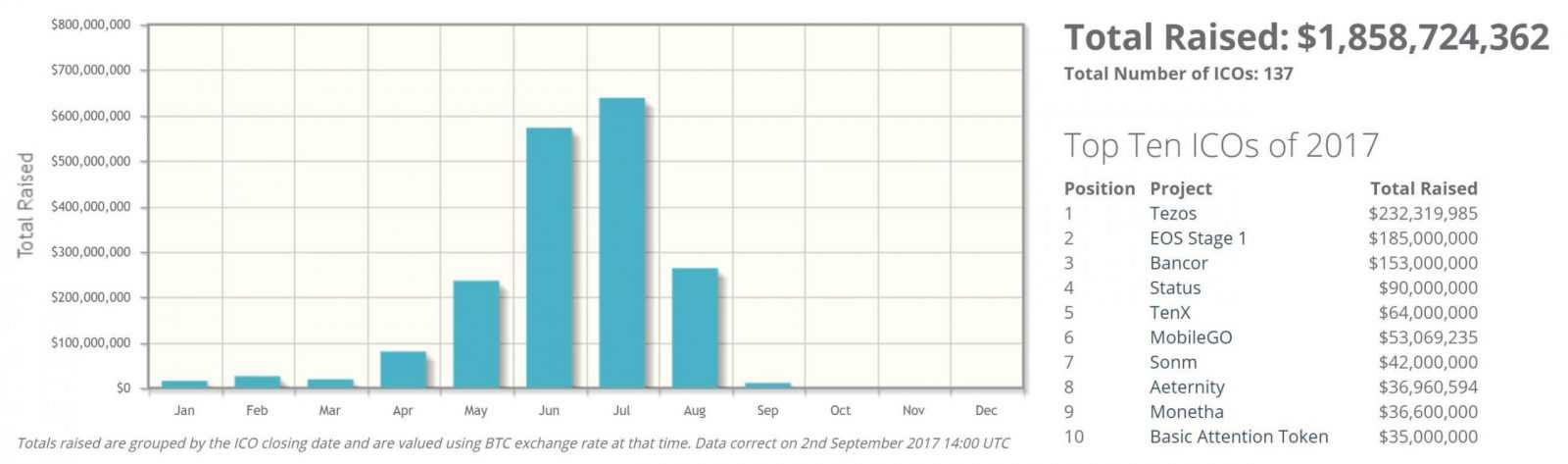 How does one determine a financial bubble? When regular people quit their jobs in order to trade cryptocurrencies or participate in ICOs, that very well might be a bubble. When the amount of money collected by a single ICO campaign exceeds $200 million, that very well might be a bubble, as well. As if that were not enough, there is yet another indicator. Over the course of only 30 days, initial coin offerings have collected $600 million, which is a little bit too much even for an overheated market.