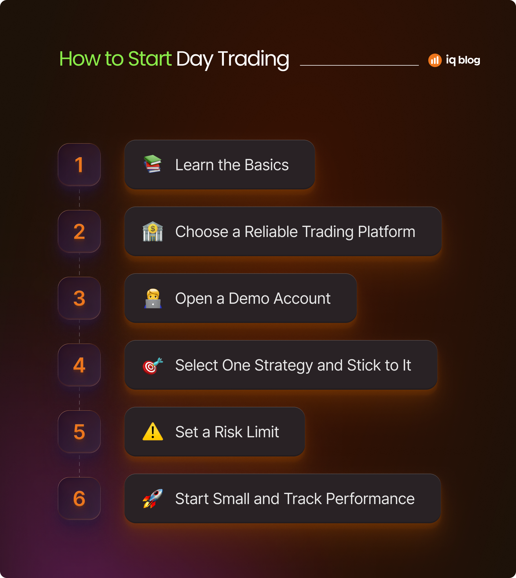 Day trading can be rewarding, but it requires proper preparation. Jumping in without a plan often leads to fast losses. Below is a practical roadmap to help beginners approach day trading with structure and reduced risk.