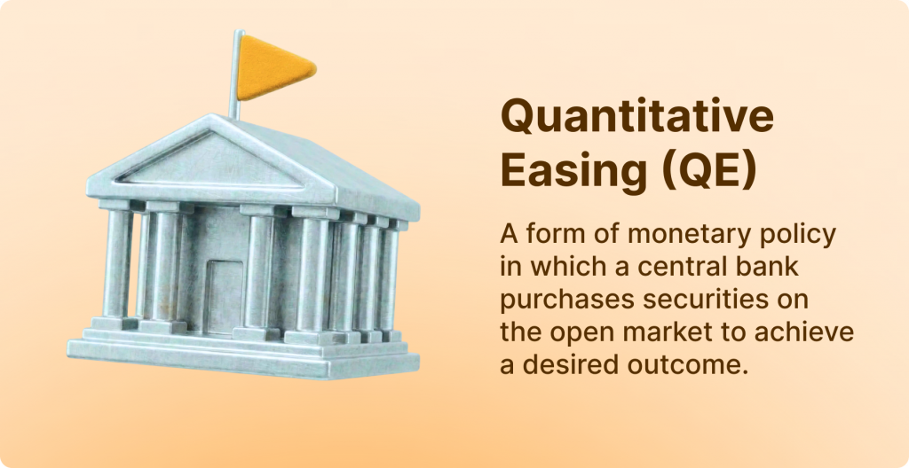 In practice, QE usually involves buying long-term government bonds. Sometimes, it also includes mortgage-backed securities or corporate bonds. By making these purchases, the central bank pushes more money into the financial system. Banks that sell bonds receive cash, which they can use to provide more loans to businesses and households.