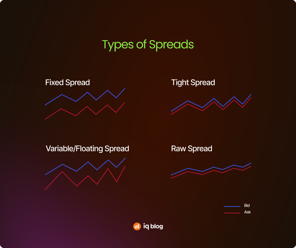 With the fixed one, the gap between the buy and sell price stays the same, no matter what’s happening in the market. Even if the market is moving quickly, the spread doesn’t change.