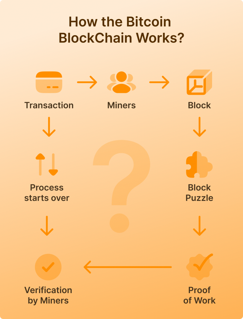 Bitcoin works through blockchain technology. Transactions are grouped into blocks and validated by miners using computational power. Once validated, blocks are added to the blockchain permanently.
