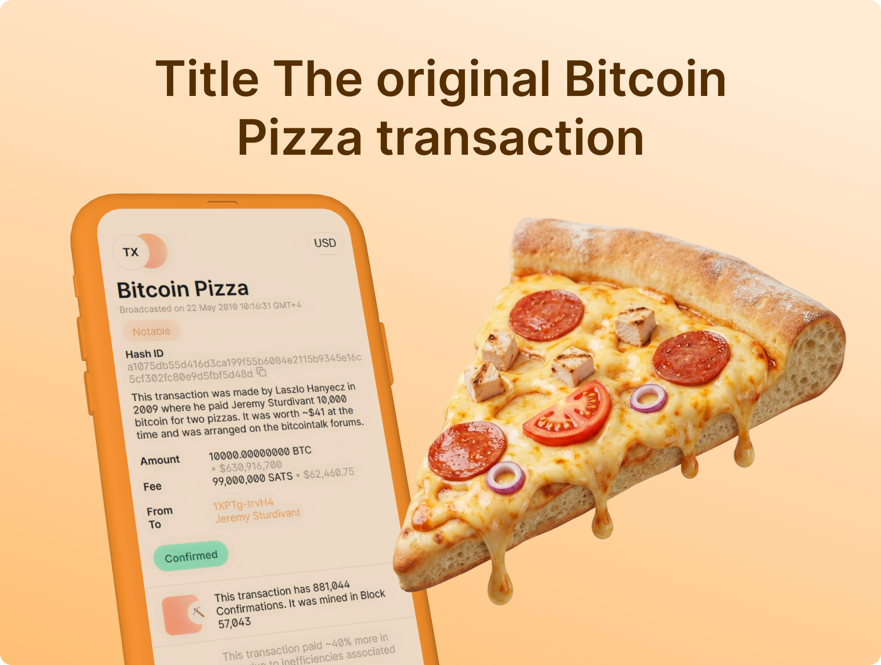 In May 2010, a programmer named Laszlo Hanyecz bought two pizzas for 10,000 BTC. Today, this event is known as Bitcoin Pizza Day and represents one of the earliest real-world Bitcoin transactions.