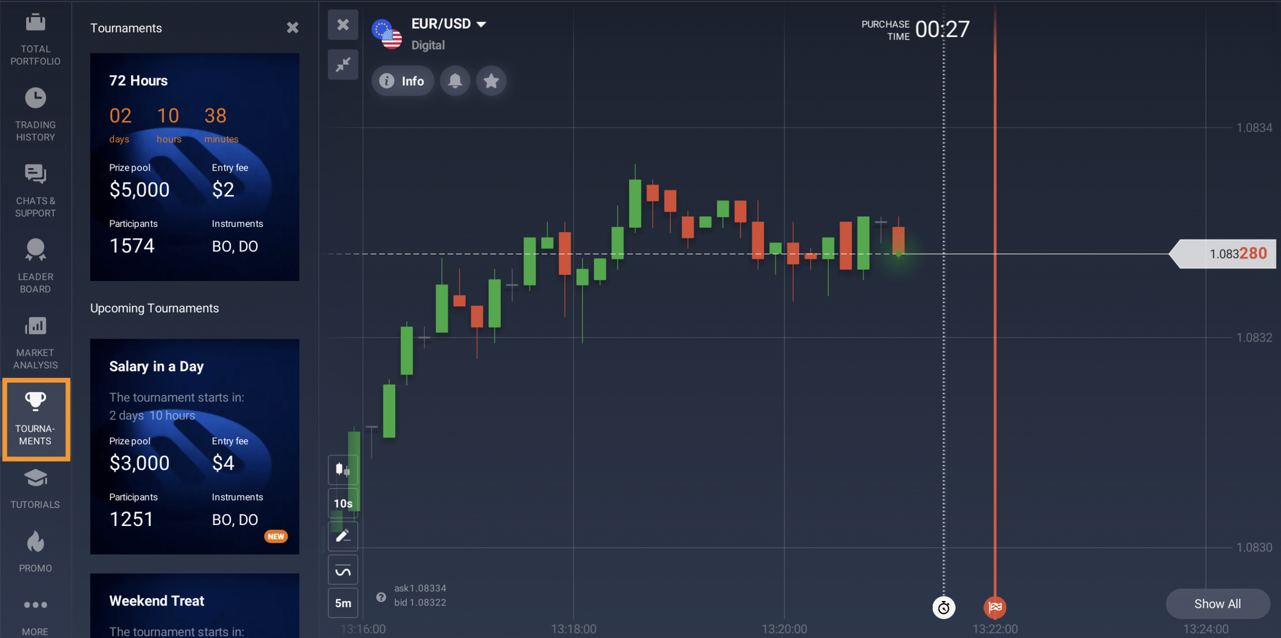¿Listo para probar suerte y participar en los próximos torneos de IQ Option? Pues dirígete a la traderoom y ¡prepárate para dar lo mejor de ti!