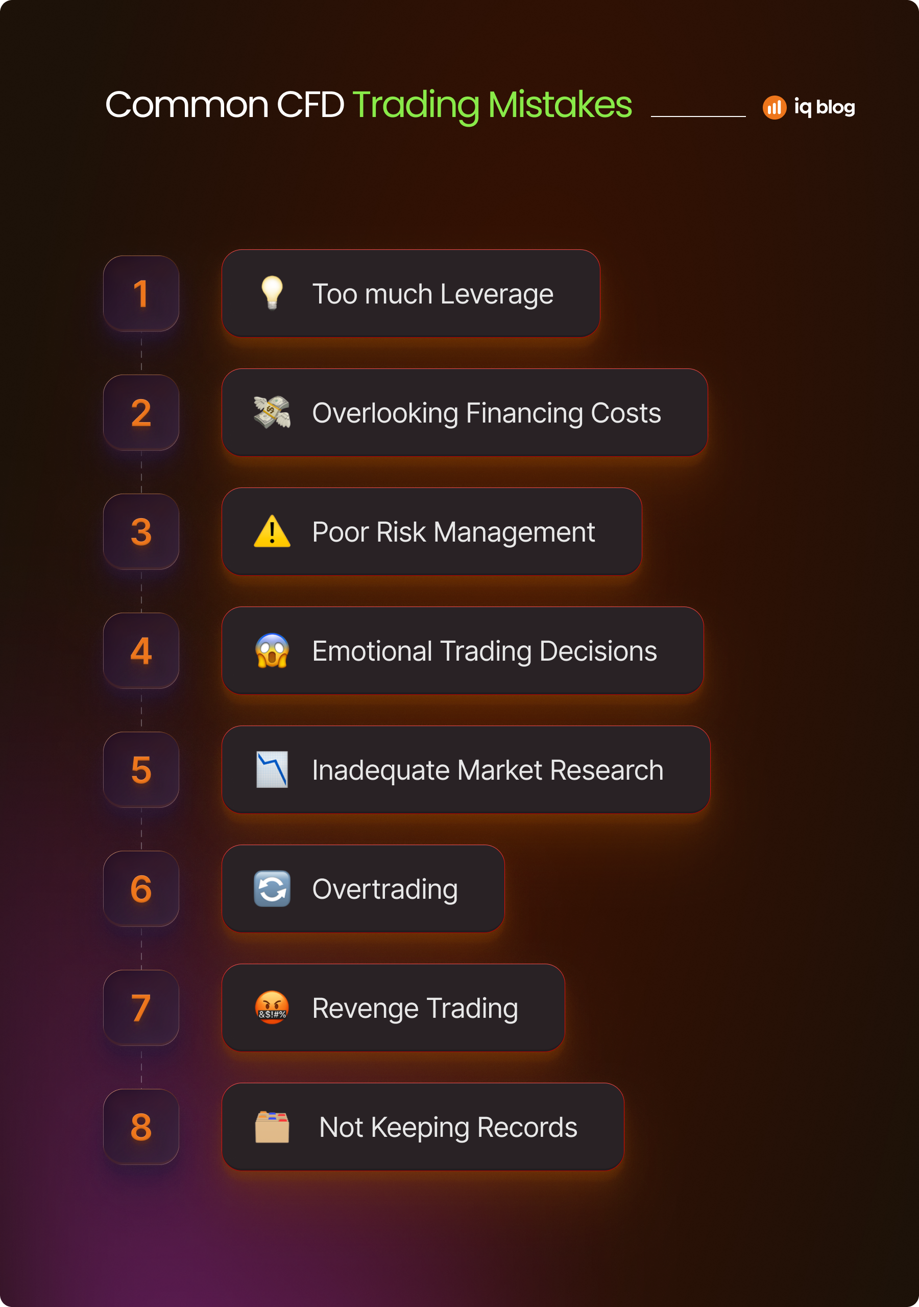 - Trascurare i costi di finanziamento: Le posizioni di mantenimento overnight comportano spese di finanziamento che lentamente impoveriscono il profitto. Consideri di considerare questi oneri nei suoi trade.