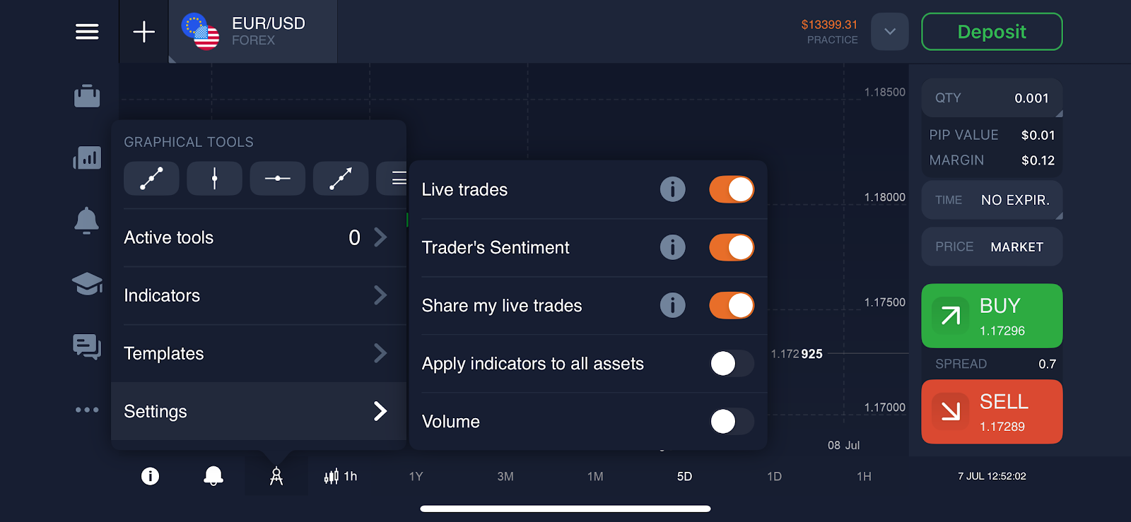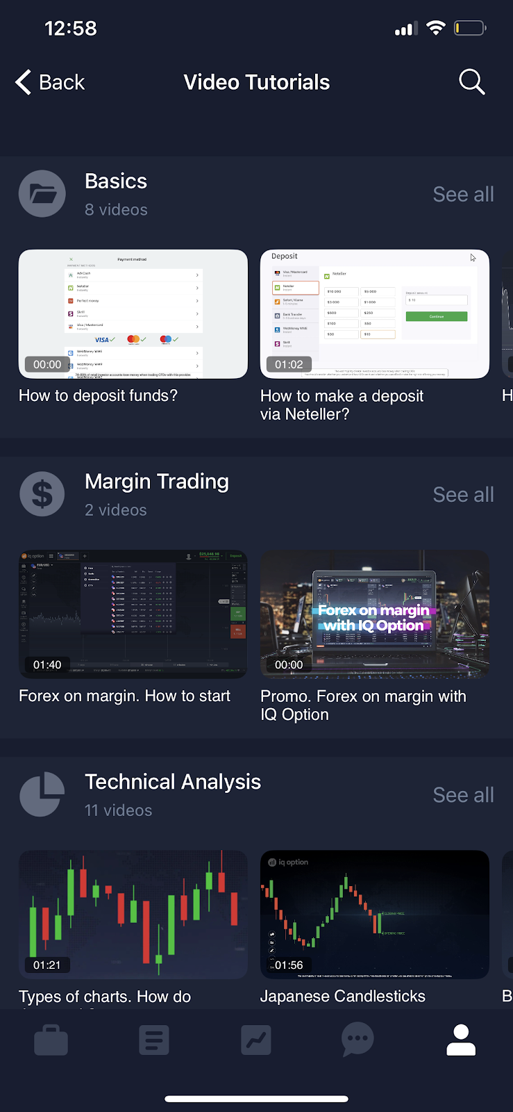 L’app di IQ Option è un ecosistema di trading Tutto in Uno, che comprende: