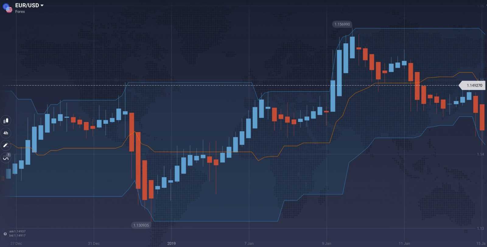 Por que um trader gostaria de saber (e visualizar) o preço máximo/mínimo na forma de uma linha quando ele já está disponível no próprio gráfico de preços? A questão é que o Canais de Donchian ajudará você a identificar a relação entre o preço atual e a faixa de negociação durante um período de tempo definido. Este último pode ser ajustado ao configurar o indicador. Assim como o Bandas de Bollinger, este indicador ajudará você a perceber quão otimista ou pessimista está o mercado. A linha superior indica a pressão de compra. A linha inferior indica a pressão de venda.