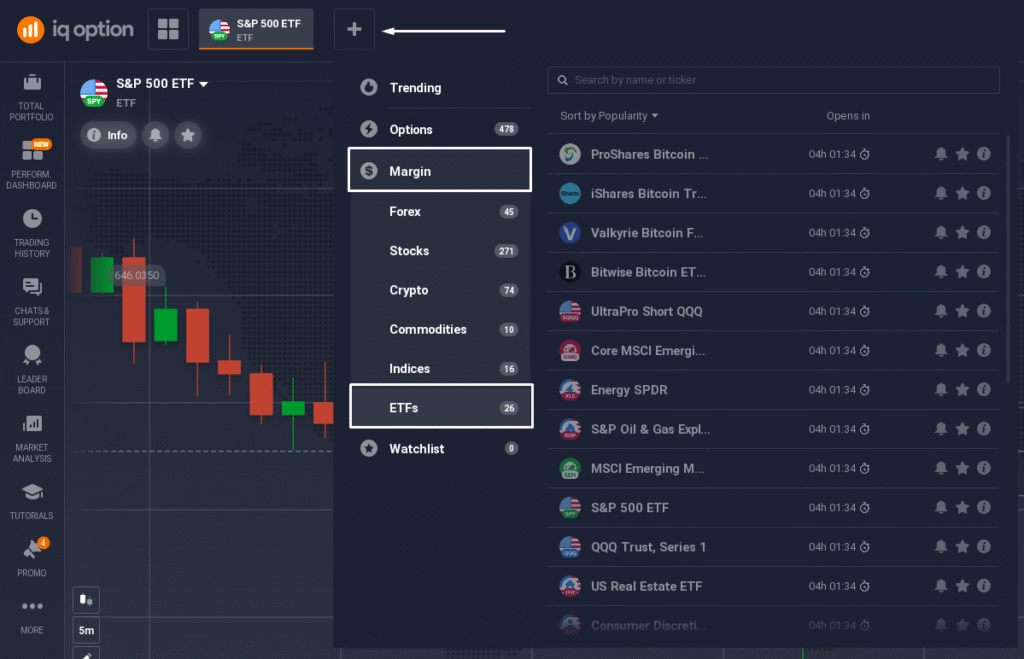 หากต้องการทดลองเทรด ETF ที่ IQ Option ให้ทำดังนี้