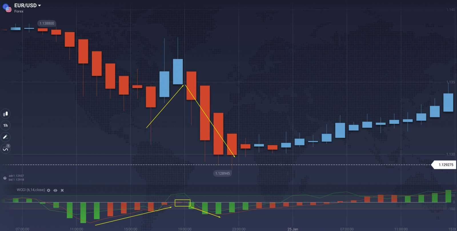 CCI และ CCI Turbo คือเส้นแดงและเขียวตามลำดับ CCI Turbo คือ CCI ปกติที่มีช่วงเวลาสั้นกว่า อย่างที่คุณอาจทราบแล้ว Commodity Channel Index คือตัวชี้วัดชนิดออสซิลเลเตอร์ที่วัดความแตกต่างระหว่างการเปลี่ยนแปลงราคาของหลักทรัพย์และราคาเฉลี่ย ราคาสินทรัพย์สูงกว่าค่าเฉลี่ยเมื่อตัวชี้วัดขึ้น ราคาสินทรัพย์ต่ำกว่าค่าเฉลี่ยเมื่อตัวชี้วัดลดลง CCI คือส่วนสำคัญที่สุดของการเทรดนี้